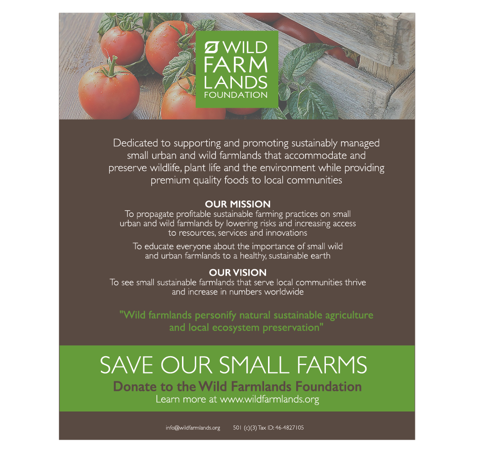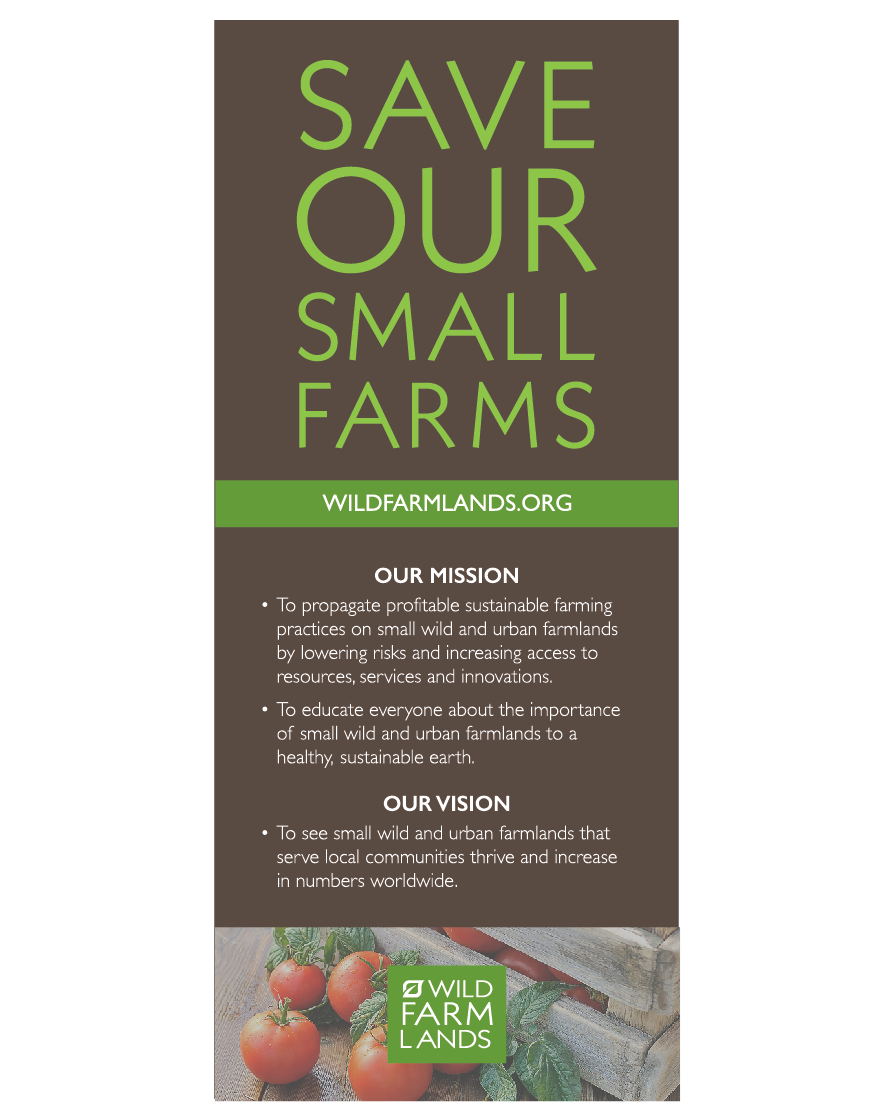 Save Our Small Farms ...a message that cannot be repeated enough! Wild Farm Lands Foundations mission is to propagate and normalize regenerative agricultural principles and practices on small farms and ranch lands. And to educate and inform everyone, especially youth, about the value of small farms to food systems and their importance to a healthy, regenerating earth. Creating strong corporate type messaging through their brand was the task at hand. They asked for a memorable icon that was clean and precise. Its important for us to insure the safety of our food supply for future generations to come...Support Our Small Farms!